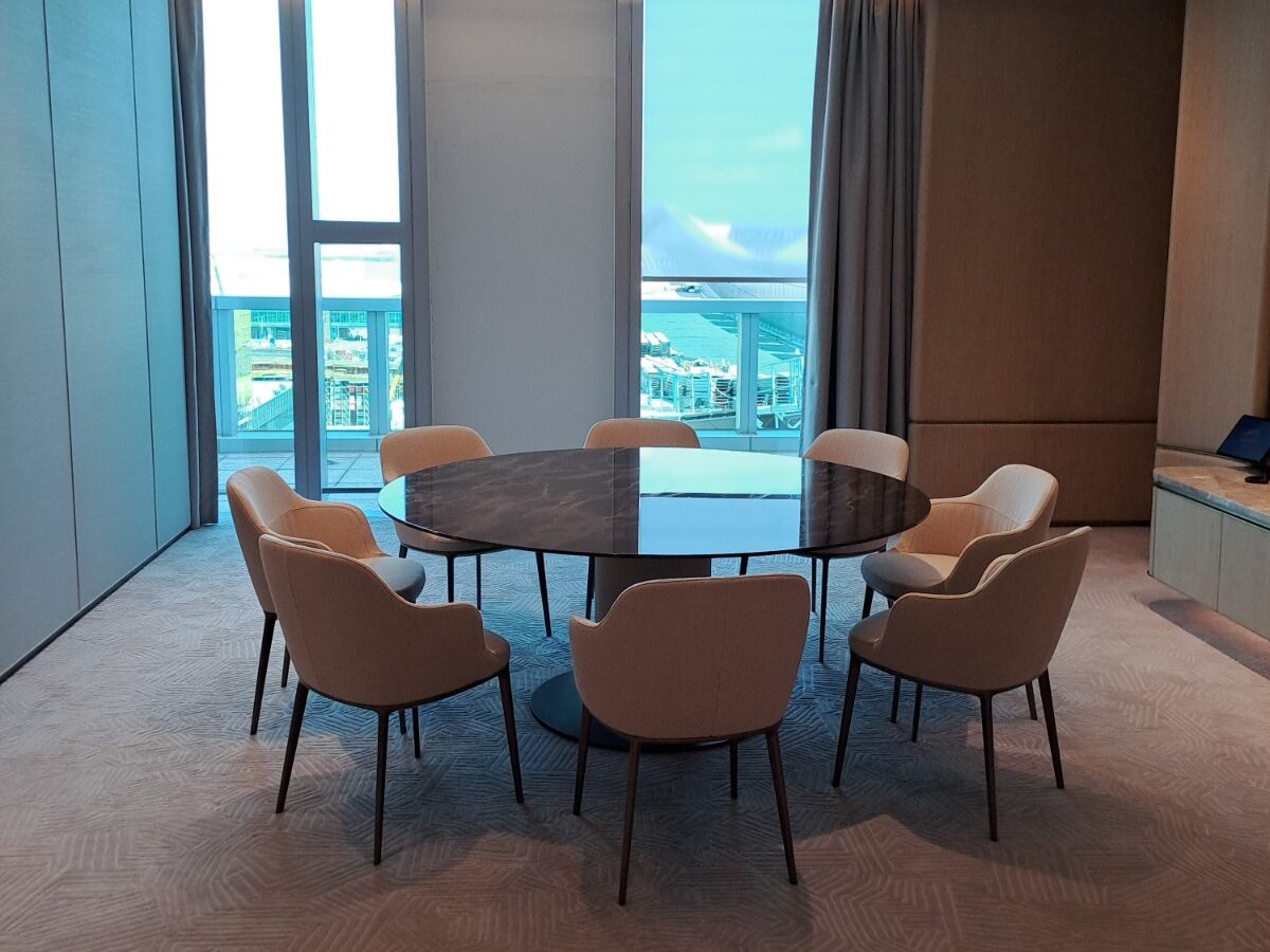 TCG delivered the retrofit of executive meeting and reception spaces at Level 7 of HKIA Tower, transforming 2,691 sq.ft. through phased demolition, fit-out, and MEP upgrades. The scope covered multiple boardrooms, meeting rooms, guest reception, and storage areas, supported by full mock-ups and enabling works. Executed within a tightly controlled airport environment, the project balanced precision and coordination, proving that even small spaces can carry big conversations.